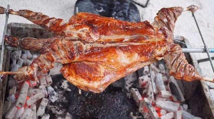 制作时,先将7种动物去毛去内脏,洗净后,再从小到大逐个套装起来,先将麻雀塞进鹌鹑肚里,再将鹌鹑塞进鸽子肚里……最后将塞进火鸡的小羊装进小牛的肚里,用铁丝捆好小牛的腹腔,放大火上烤,边烤边转动,直到熟透为止。