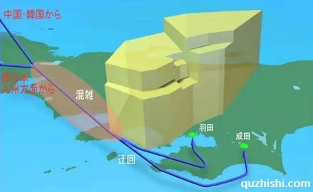 京都圈最大的羽田机场就在横田空域附近,为绕开美军的管制区域,飞往大阪四国等方向的航班都必须绕道,或者是提高飞行高度。