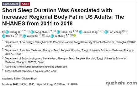 研究显示,在考虑社会人口学特征、生活方式、合并症和药物后,与每日睡够7~9小时的人相比,每天缺觉 (即睡眠不足7小时) 的人躯干、手臂和腿部的脂肪质量指数均较高。不过与每日睡眠时间长于9小时的人相比未发现差异。