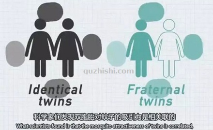 英国科学家利用一群同卵双胞胎和异卵双胞胎做了一项「蚊子更爱谁」的对比研究。对比之后发现,蚊子们对同卵双胞胎 (基因100%相同) 的选择基本一致,对异卵双胞胎 (基因不同)的选择会有非常明显的差异。