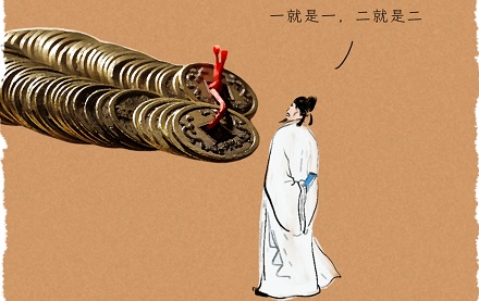 在数学文献记录中,钱币 108 文,也只写作「百八文」。即便是在计数方面,也是「负二、负一、得一、得二、得三」这样的形式。