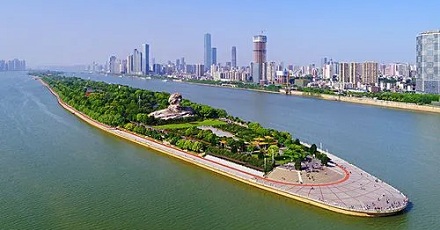 橘子洲位于长沙市岳麓区的湘江中心,由河沙堆积而成,是世界上最大的水陆洲,也被誉为「中国第一洲」。早在晋唐时期,洲上遍种橘树,所产南橘远销江汉等地,故得名橘子洲。