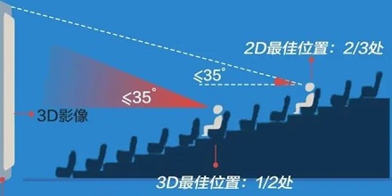 根据国际电视电影协会研究,在观看电影时,仰角 ≤35°,水平视角 ≥36° 时,是最舒服也是观影效果最好的位置。