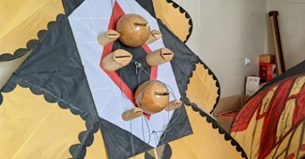 「哨口风筝」是一种民间工艺产品,相传南北朝时用来传递信息用的。风筝中间安装有哨子,放飞时能随风「歌唱」,在空中奏出交响乐。