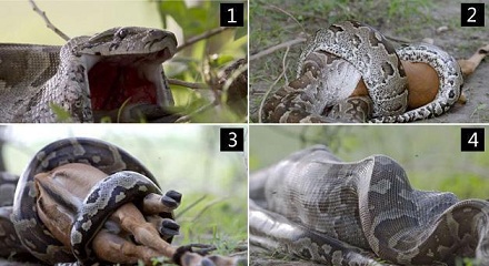 蟒蛇可以感受到猎物的呼吸和心跳,猎物每吸一口气,就会被勒的越紧,直到心跳停止跳动。