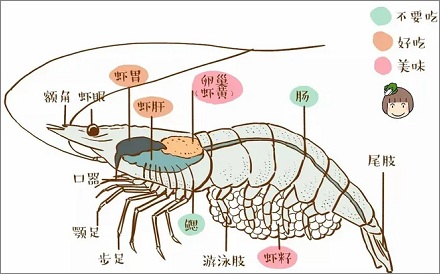 从美食角度看,虾的内脏全在胸部,肚子就是一坨肌肉,用来突进游泳,明摆着让人吃的。