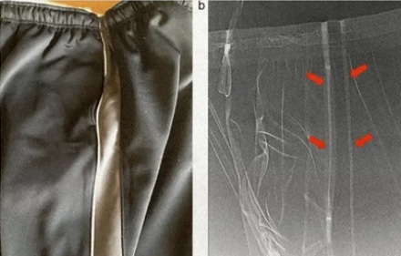 (图源文献 | 箭头所指为运动裤含有金属纤维部分)