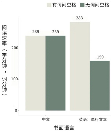 ✔ 英文是表音文字,需要多个字母连在一起组成单词,中间要是不加空格,理解就很困难。