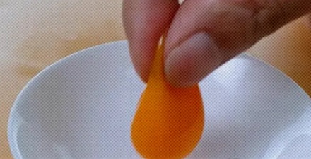 它可以与蛋黄表面反应,降低蛋黄表面张力,使蛋黄与手指之间从「紧绷」变得「服帖」,紧紧附着在手指上。