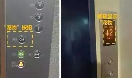 有些电梯会装宠物按钮,带宠物的人按一下,等电梯的人就能知道电梯里有宠物了,怕宠物的人可以选择不坐!