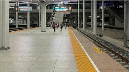 比如在公交站台或者火车站台,经常能看到长条的圆点盲道。它一边告诉视障人士到站台了,同时也能警示所有人,不能越界。