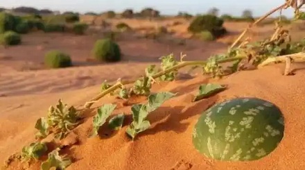 沙漠里的长出来的西瓜,跟西瓜根本不是一个品种。它学名叫药瓜,披着一副西瓜皮,但切开里面是长这样——