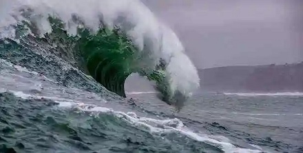 海啸生成的波浪很容易接触到底部反弹回来,导致波浪高度急剧增加,严重的话能有二三十米。