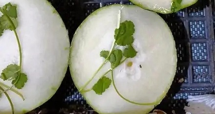 爱逛超市的老爷可能发现过,超市卖的切片冬瓜上经常放着几根香菜。
