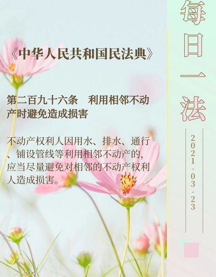 第二百九十六条 使用相邻不动产避免造成损害 不动产权利人因用水、排水、通行、铺设管线等利用相邻不动产的,应当尽量避免对相邻的不动产权利人造成损害。