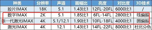 首选 IMAX 激光厅:12K 分辨率 + 圆偏振 3D + 22 FL 亮度。