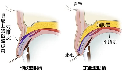 蒙古褶 + 内眼角朝下 + 外眼角朝上