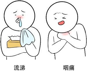 鼻塞、流鼻涕、咳嗽、喉咙痛、低烧