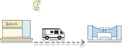 再由运钞车将保险箱运回银行
