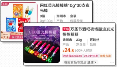 糖棍里面会发光的荧光物质就更危险了
