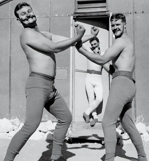 于是 20 世纪,加拿大一位设计师弗兰克·斯坦菲尔德给连体衣进行了分体式设计。