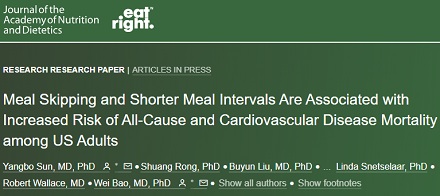 与规律吃晚餐的人相比,不吃晚餐的人全因死亡风险增加16%,心血管死亡增加19%。